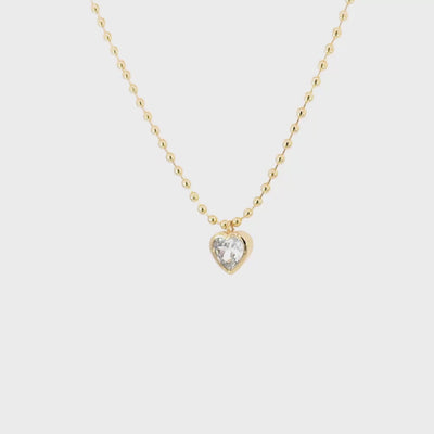 Delicate yet striking, this pendant necklace is designed to shine in every moment. A luminous heart stone is bezel-set in polished gold with a refined beaded chain that combines subtle texture and movement with a little romance. Effortlessly elegant on its own and perfect for layering, this piece brings a soft sparkle and timeless appeal to both everyday looks and dressed-up moments.